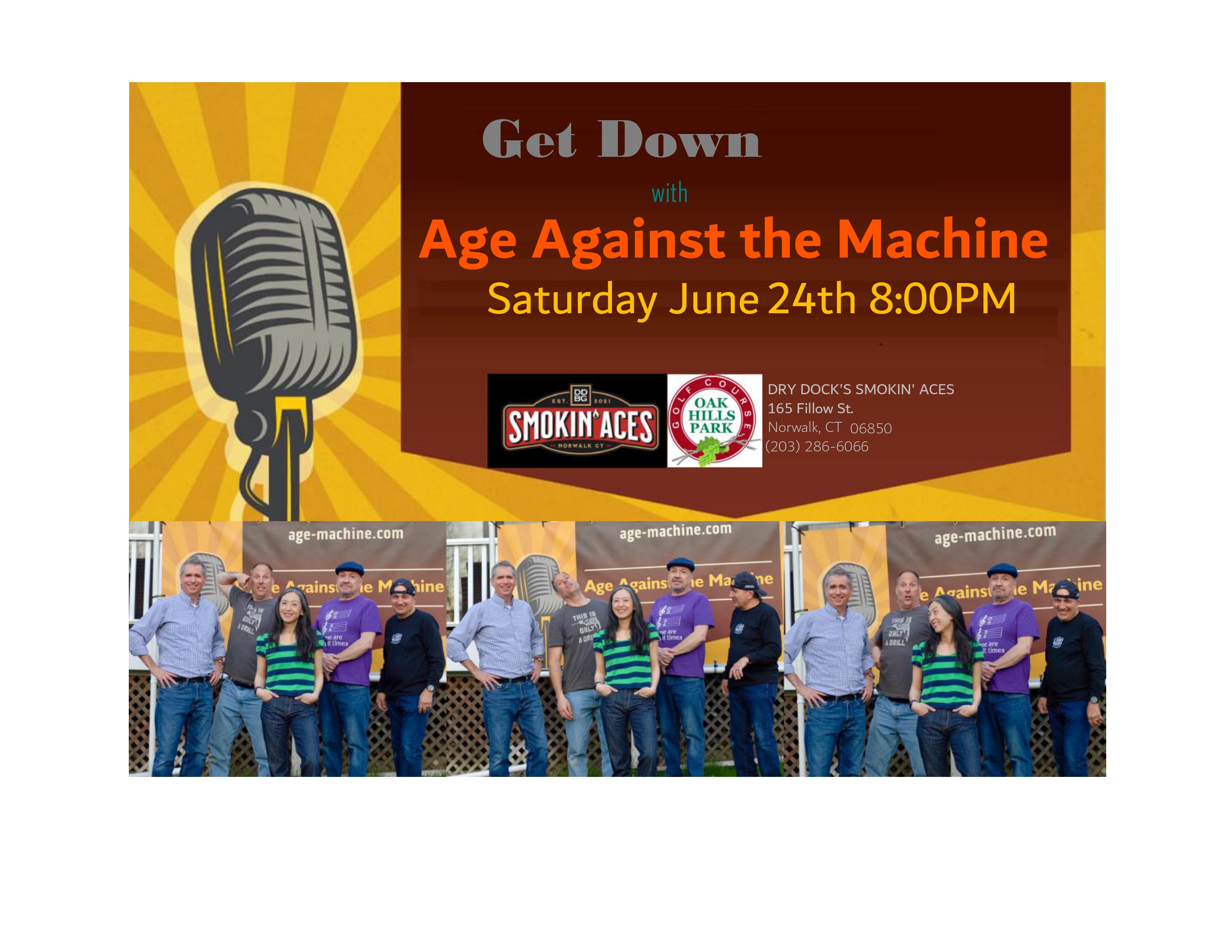 Age Against the Machine was honored to provide the entertainment at Dry Dock's 5oth Anniversary Celebration. When rain threatened to kill the party, we shifted to "un-plugged" mode, moved inside, and kept the festivities roaring!
